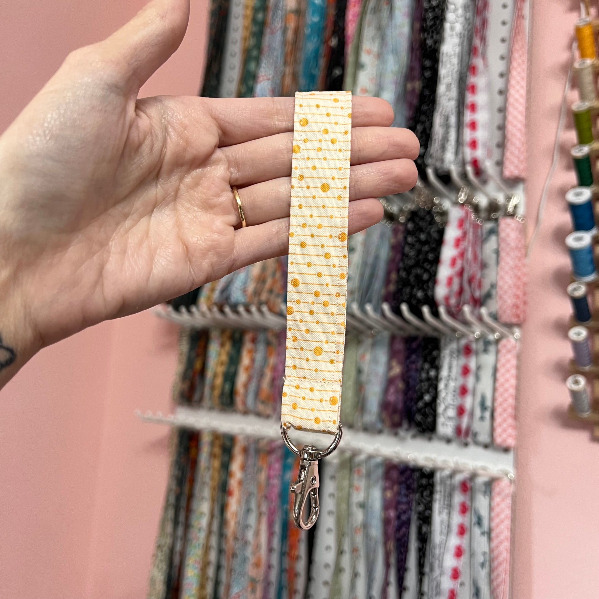 Please note that this is a wristlet from my fabric stash in which I choose my mystery wristlets/lanyards/scrunchies from.